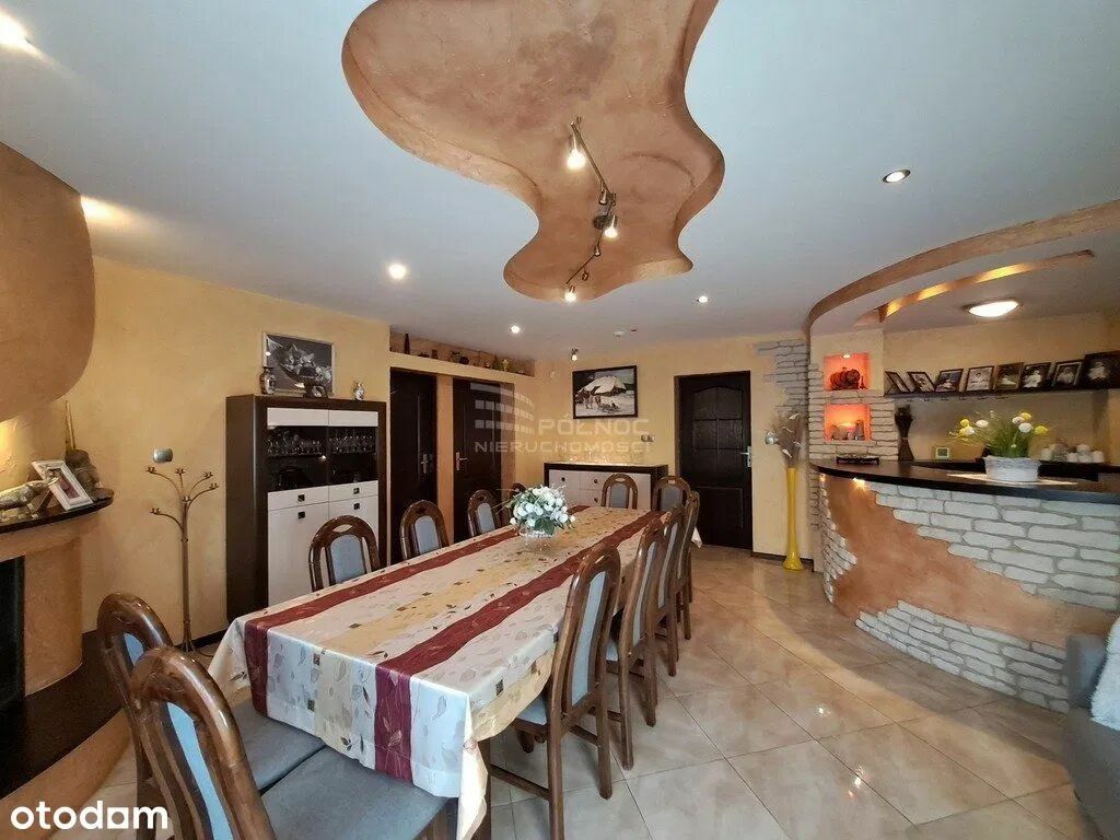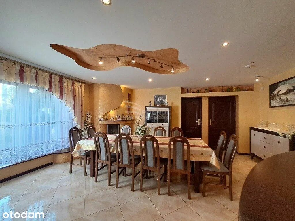 W skład nieruchomości wchodzi: Dom mieszkalny o powierzchni użytkowej ok 260m2 który składa się z; Niskiego parteru na którym znajduje się przestronny salon z jadalnią, kuchnia, WC , korytarz ,zejście do piwnicy i wyjście boczne na ogród. Wysokiego parteru na którym mamy wejście główne do budynku, wiatrołap, 3 jasne i ustawne pokoje, łazienkę z WC i kabiną prysznicową oraz korytarz. Piętra na którym znajduje się przestronny salon z otwartą kuchnią i wyjściem na taras, 3 pokoje, garderoba, 2 łazienki i korytarz z wyjściem na balkon. Piwnicy w której znajduje się kotłownia, spiżarnia, letnia kuchnia, pomieszczenia do przechowywania i wyjście na podwórze. Strychu. Budynek gospodarczy z dwoma garażami na 4 pojazdy i altana ogrodowa Działka o kształcie zbliżonym do prostokąta o powierzchni ok 1723m2. Dom zbudowany z pustaka , ocieplony styropianem 8cm, dach pokryty blachodachówką, ocieplony wełną mineralną 16cm.Orynnowanie PCV, okna PCV białe -szyby zespolone k=1,0. Przyłącze energetyczne 230/400W. Ogrzewania powietrzną pompą ciepła 14 kW firmy Buderus , dodatkowo piec na eko groszek 5 klasy. Woda ciepła z paneli solarnych Buderus 3 szt. Instalacja Fotowoltaiczna 9 kW, klimatyzatory 3,5 kW firmy LG - 3 sztuki . Instalacje TV, SAT, Internet w każdym z pokoi. Działka częściowo utwardzona kostką brukową a częściowo porośnięta zadbanym trawnikiem. Zadbany ogród z altanką - idealnym miejscem do letniego wypoczynku, licznymi nasadzeniami drzew i krzewów ozdobnych oraz kwiatów. Typ nabywcy Dlaczego może być zainteresowany Rodzina wielopokoleniowa Osobne strefy mieszkalne na piętrach, duża powierzchnia Inwestor (wynajem/dom pracowniczy) 2–3 niezależne strefy, osobne wejścia, dużo pokoi Przedsiębiorca Możliwość prowadzenia działalności: biuro, gabinet, B&B Osoba prywatna szukająca "premium" Wysoka jakość wykończenia, gotowość do wprowadzenia sięSprawdź zainteresowanie tym ogłoszeniem