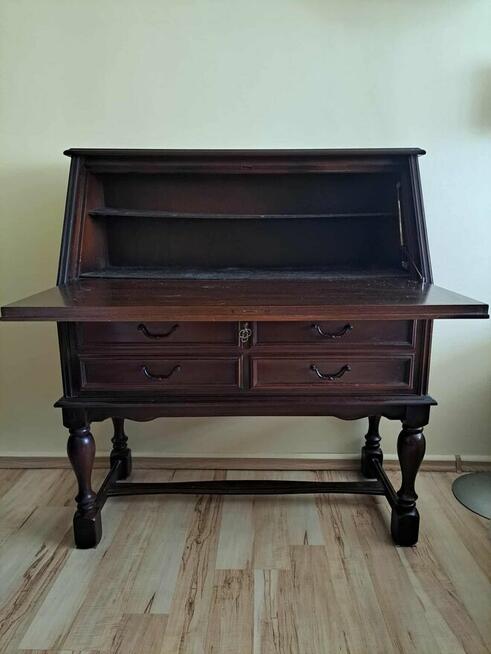 Holenderski sekretarzyk z blatem w dobrym stanie. Mebel jest wykonany z orzechowego drewna. Posiada 4 szuflady i zamykane ...