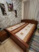 Łóżko z litego drewna z dwoma szufladami i materacem w komplecie. Po bokach znajdują się półeczki idealne do ...