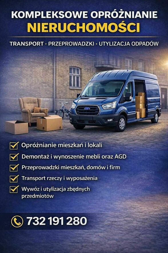 Opróżnianie mieszkań, domów, piwnic, garaży, strychów, magazynów i działekWywóz mebli, RTV/AGD, śmieci, złomu i odpadów poremontowych (gruz, karton-gips, styropian)