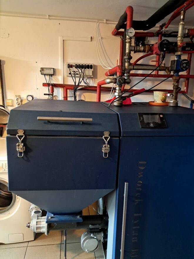 Kocioł CO na ekogroszek V klasy 24 kw COMFORT BLUE.Cena zawiera także armaturę widoczną na zdjęciu.