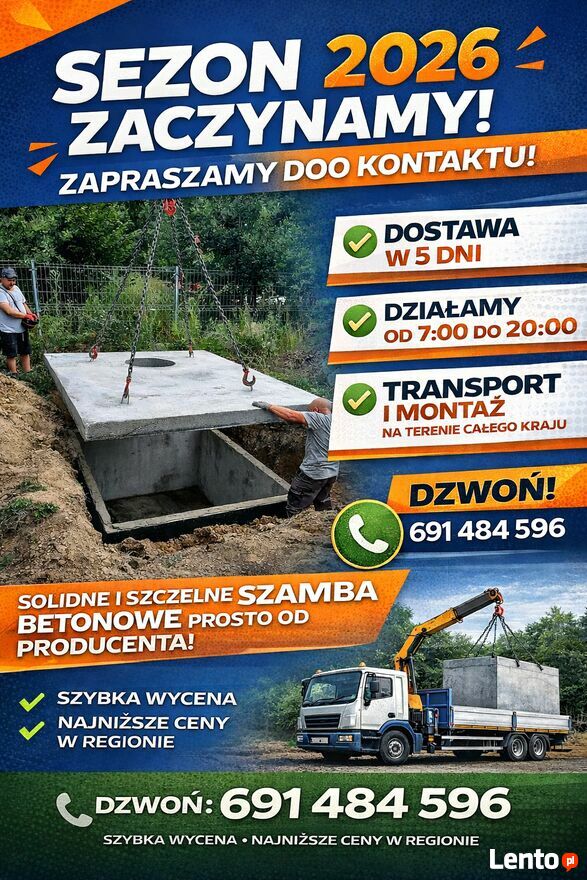Jeśli potrzebujesz szamba betonowego z szybką dostawą i profesjonalnym montażem — jesteś w dobrym miejscu!Dostawa w 5 dni