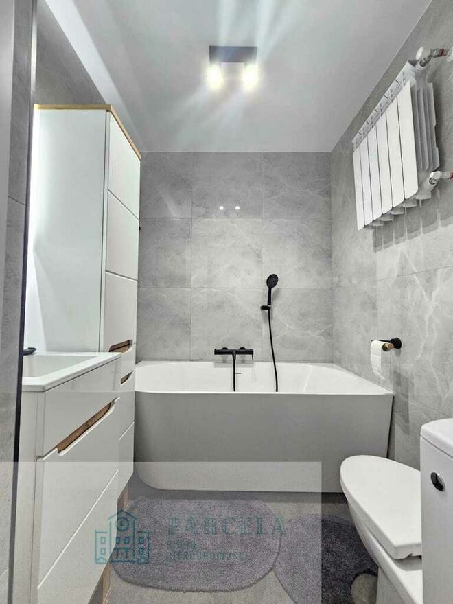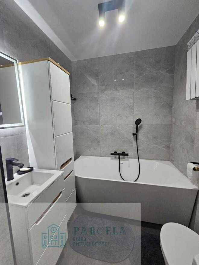 wanną i WC – nowoczesna, świeżo wykończona, gotowa do użytku